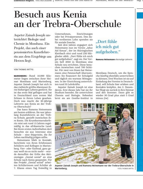 Hier berichtet die Thüringer Landeszeitung über die Unterstützung des Rotary-Clubs Weimar-Bauhaus für EducAid Kenya.